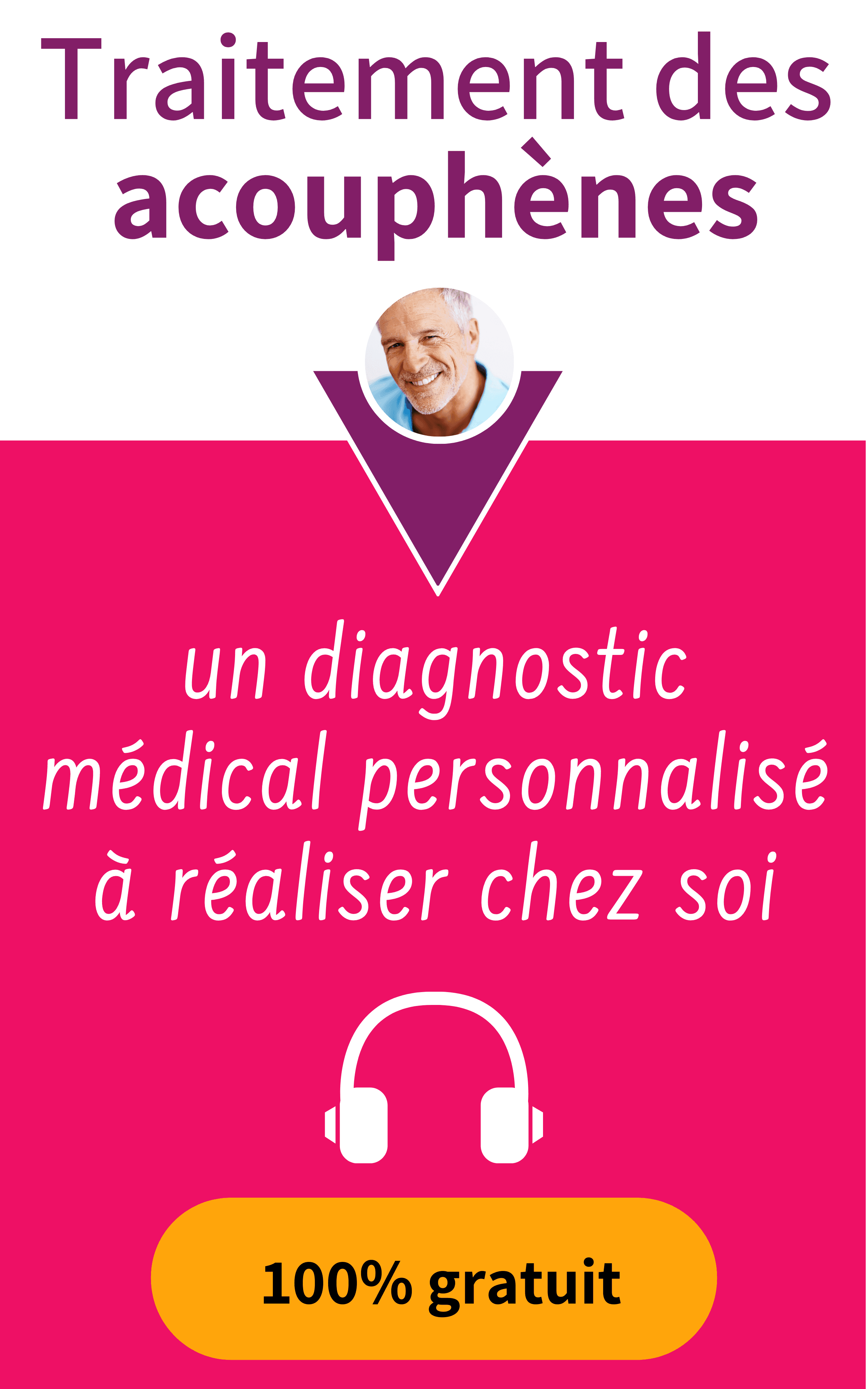 - En cas d’acouphène chronique ou de maladie sous-jacente (presbyacousie, maladie de Ménière…), le traitement vise à réduire leur impact avec une stratégie personnalisée :